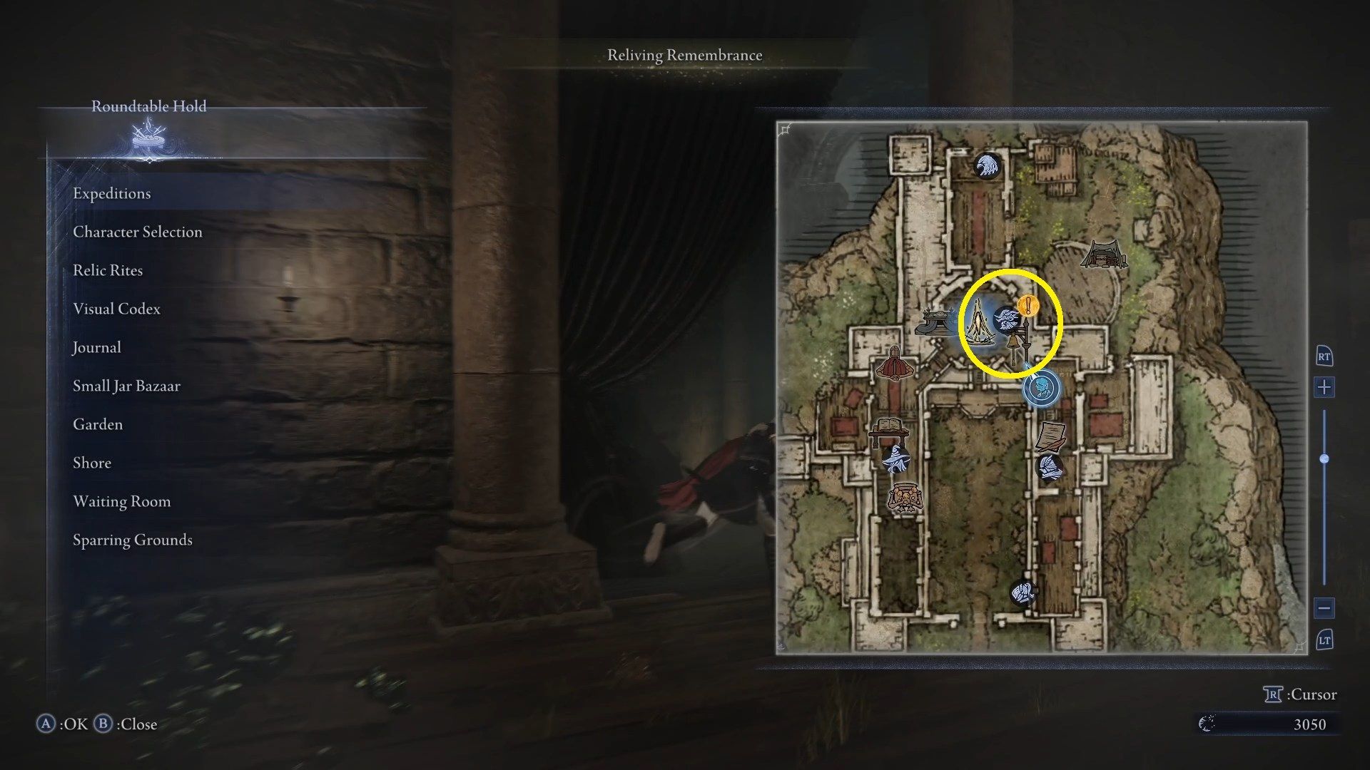 Fortunately, doing Remembrances is much simpler than the heavily convoluted side quests typical of FromSoftware. Upon activation of the Remembrance, the edge of the screen in the Roundtable Hold will become slightly blurred. This means that you can make progress in Remembrance, and changing characters will reset your progress. Open the map and find the yellow exclamation mark icon on it. It will most often mark one of the characters living in the fortress. Talk to the characters until you exhaust all of their dialogue lines. The next step is usually to go on an expedition.