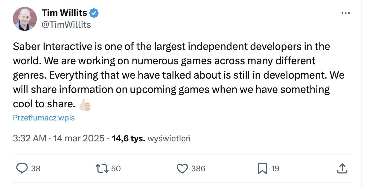 In response to the rumors, Willits released a statement on X, assuring that Saber Interactive has not left any of its games behind: