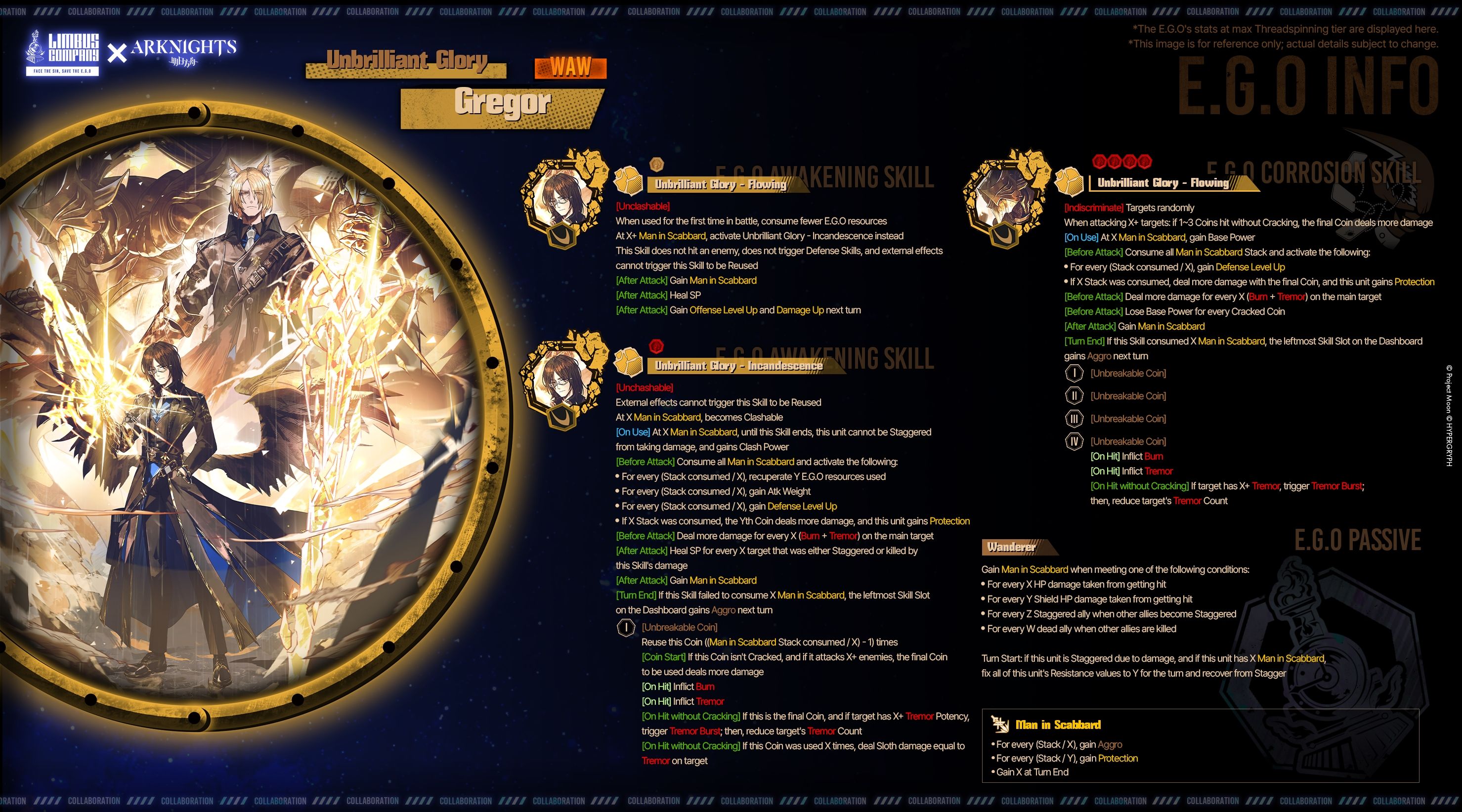 Keep in mind that new EGOs are available only until the end of the event, October 23 at 6:00 KST. Unbrilliant Glory Gregor, Command: Meltdown Faust and To Remain Oneself Hong Lu are featured only in the new EGO Target Extraction (Pilgrimage of Compassion). Tidal Elegy Ishmael, on the other hand, is the Event Reward for the new time-limited content.