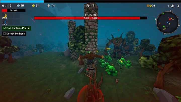 The UI is identical, and even the objectives, tomes, and items are the same. There’s the whole “find the portal and beat the boss” objective, Banana weapon, and Regen Tome. The so-called dev could’ve at least tried to come up with new names. Though I guess calling one of the bosses “King of Tree” technically counts as creativity.
