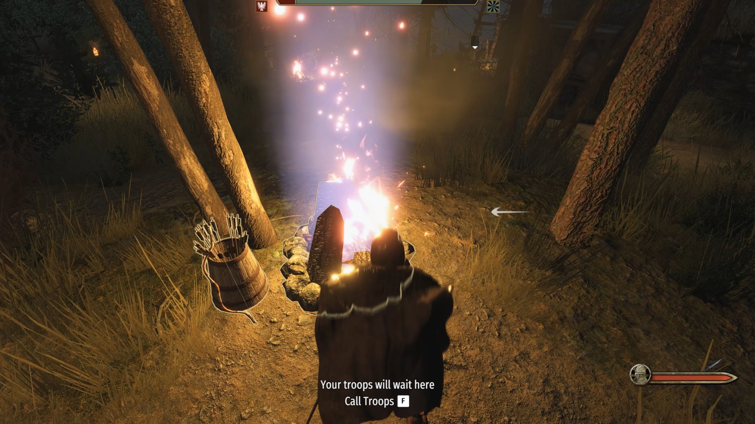 Alternatively, you can sneak in to a hideout, stealthy kill some guards, and reach a fire that allows for calling troops to take care of the rest of the camp. However, keep in mind that if you just SNEAK through the guards unnoticed, the signal does not activate, you need to KILL them.
