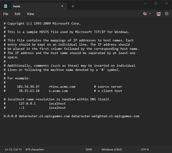 Beware, adding this line can cause issues with other games which use Epic Services! However, reverting it is simple, as all you need to do is to access “hosts” file again following the steps above and deleting the line that you have added. Alternatively, you can bring back the original file that you might have backed up (which is advised).