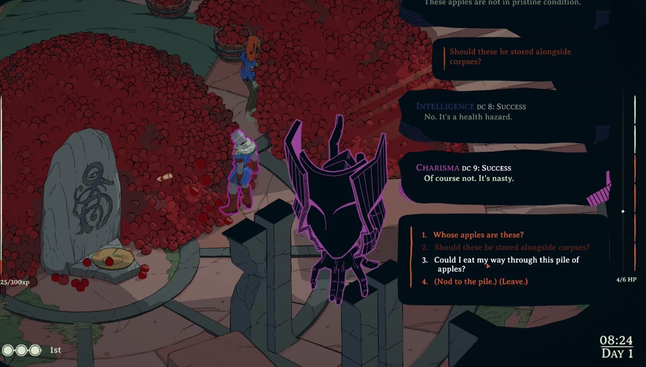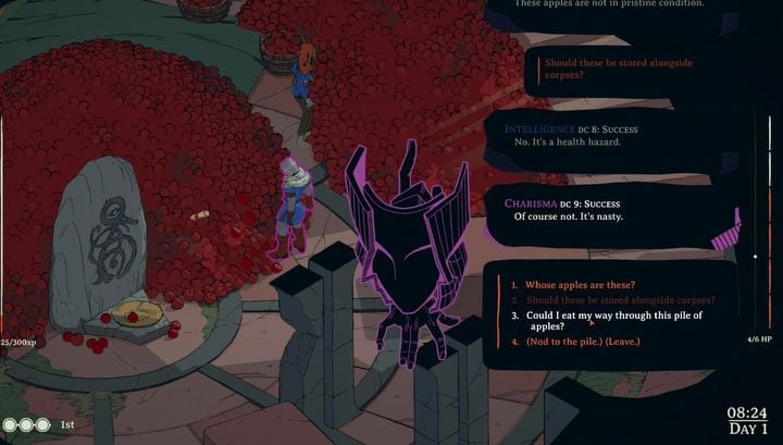 And yes, Esoteric Ebb is intentionally weird. The game leans into absurdity, dark humor, surreal moments, and bizarre choices, like eating a giant pile of rotten apples just to see what’s under them. As the dev described it himself: “Become the most interesting player at the table and completely ruin your DM’s day.”