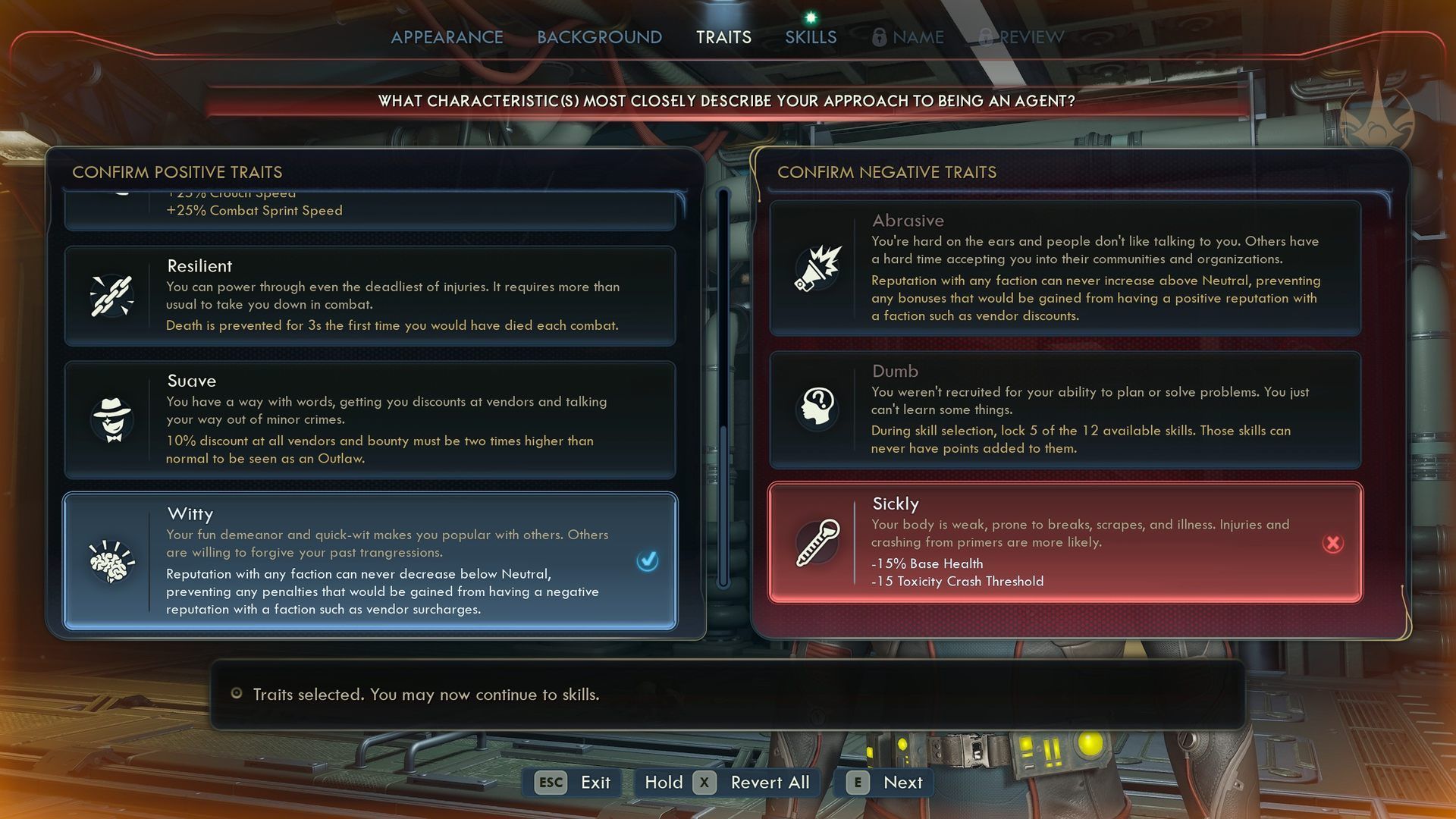 Importantly, you can choose only one positive trait for free. If you decide on two, the game will force you to balance the positive traits with one flaw. Choose carefully, as a poorly chosen debuff can negatively affect your gameplay experience.