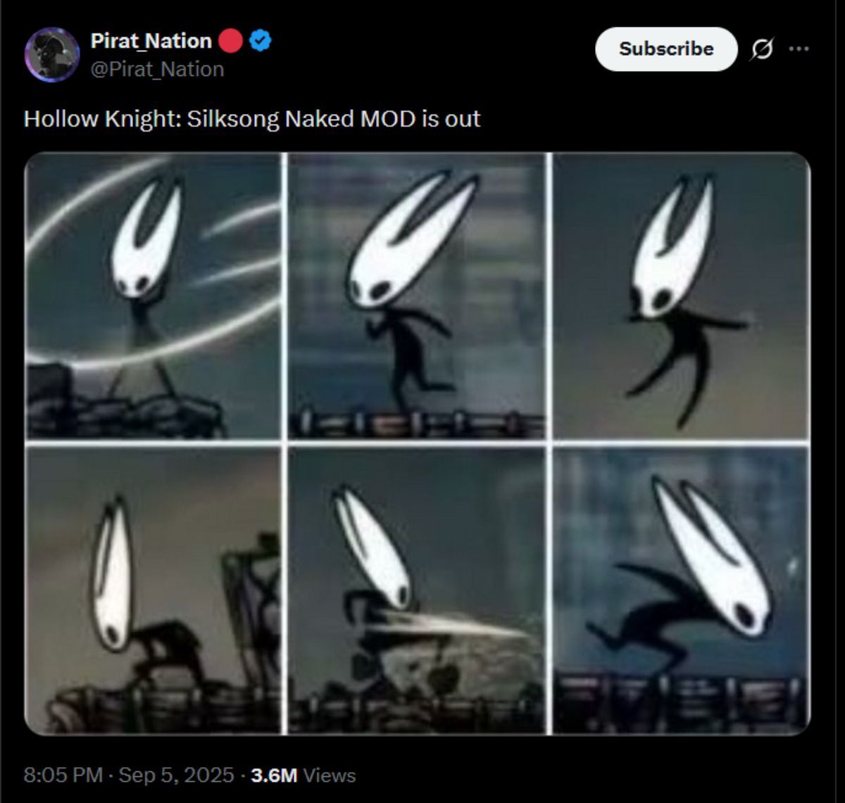 Tracking down the source of a rumor is always tricky, but this time it probably started on X. Pirat_Nation showed a few screenshots claiming there was a Silksong naked mod, and from there the whole thing blew up. Word spread like wildfire, and before long even Reddit had players convinced, frantically hunting for the mod.