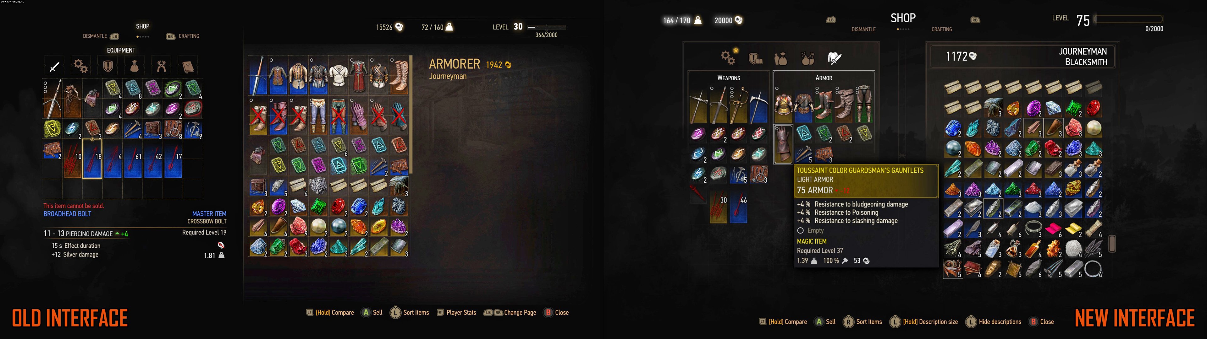 With the release of the Blood and Wine expansion on May 31 comes a new update for The Witcher 3: Wild Hunt. It will bring, among other things, many changes to the user interface. CD Projekt RED has provided us with some comparison screenshots.