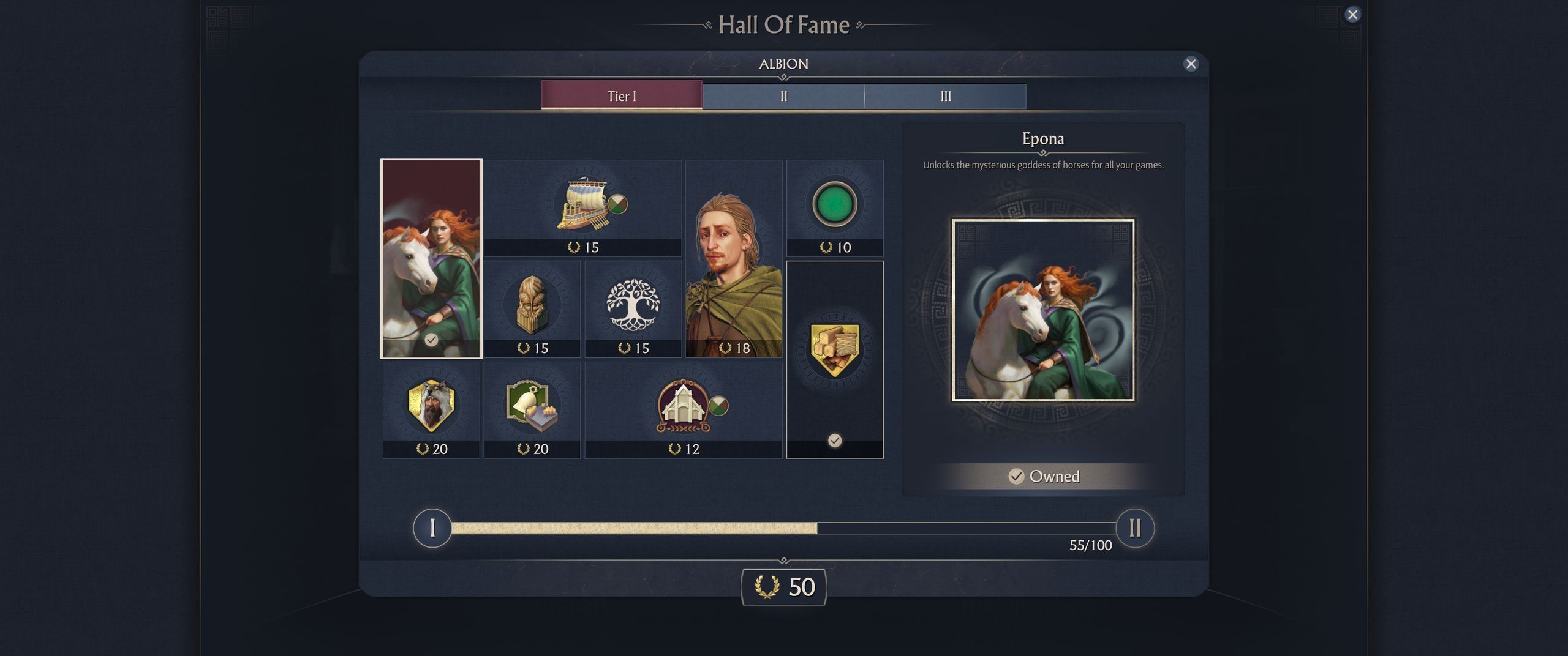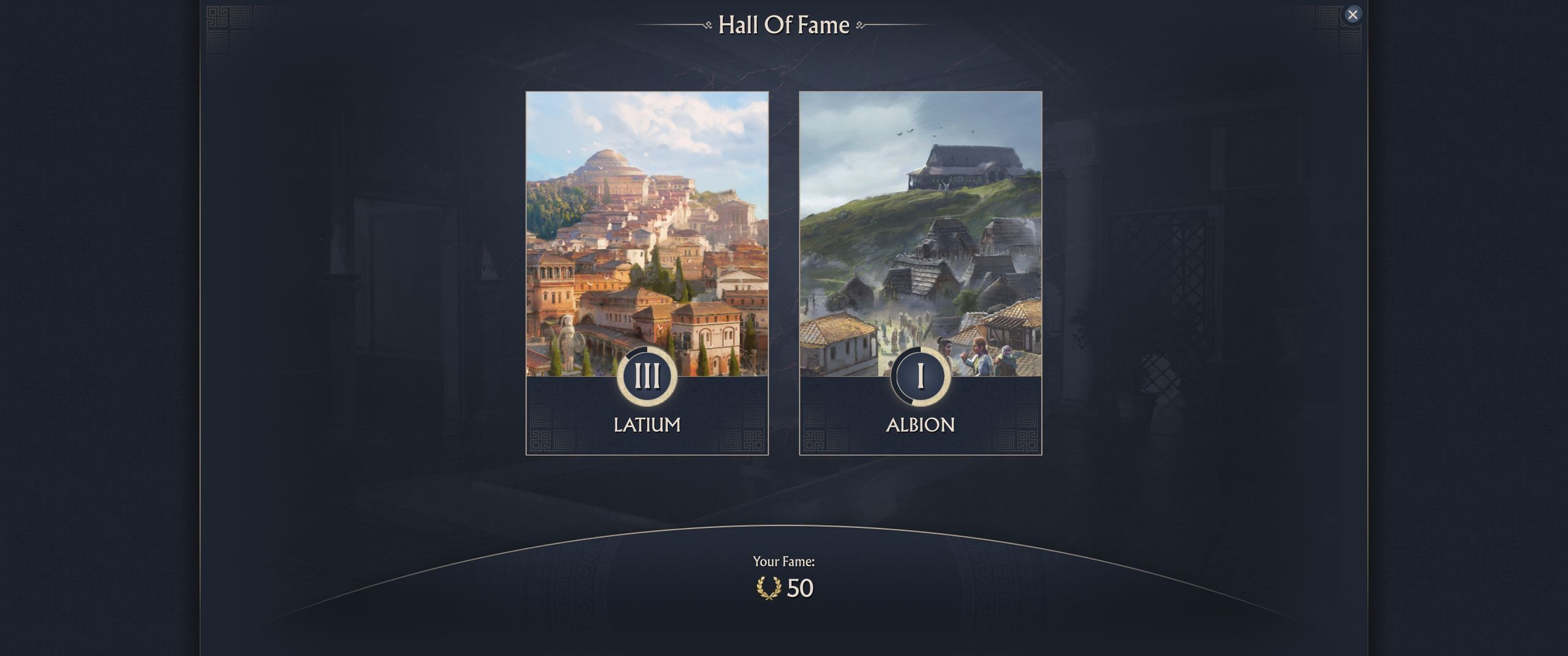 The Hall of Fame operates on a tier system. Initially, only rewards from the gallery's first tier are available. Spending a certain amount of fame on a given gallery unlocks its next tier, which contains different rewards. Additionally, two galleries are available to you – Latium and Albion. Both share the same currency and function identically, differing only in the number of tiers and the rewards offered.