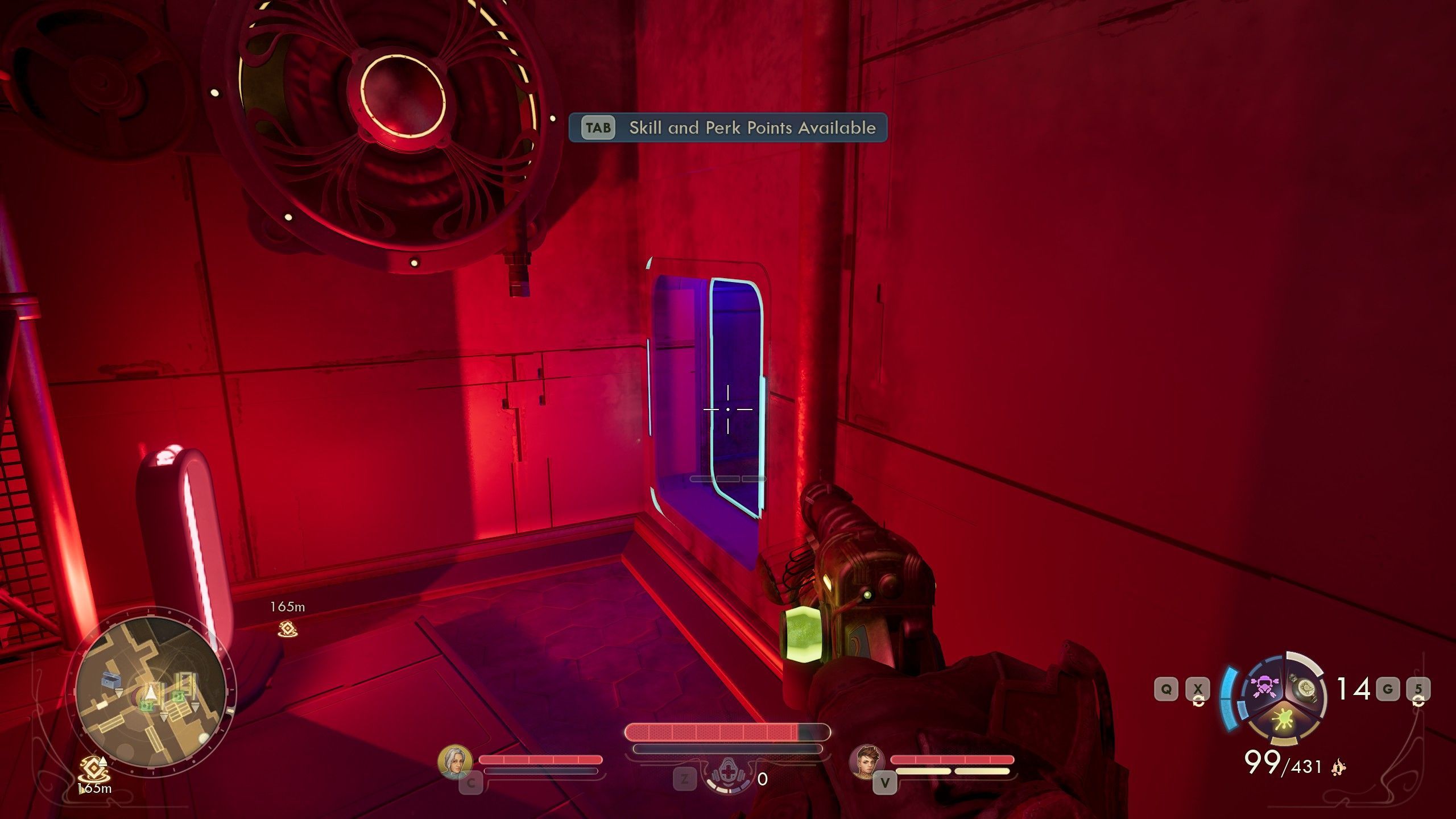 At the end of the red corridor, you will find a ventilation shaft. Enter it, and you will reach a locked room.