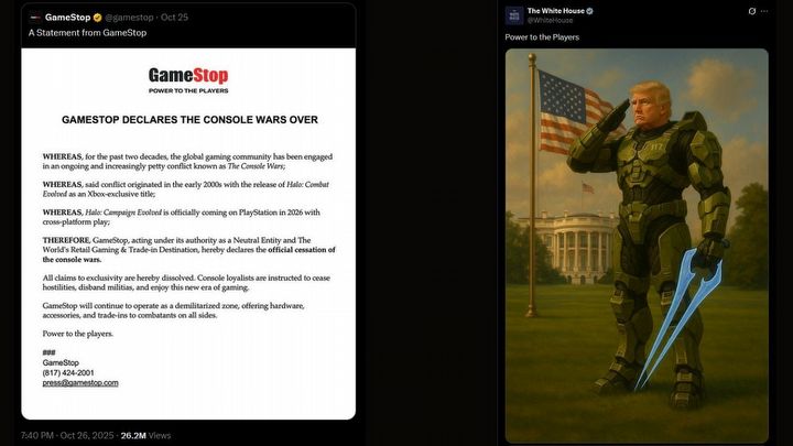 GameStop "declares" the console wars over, and The White House responds.Source: GameStop and The White House on X/Twitter