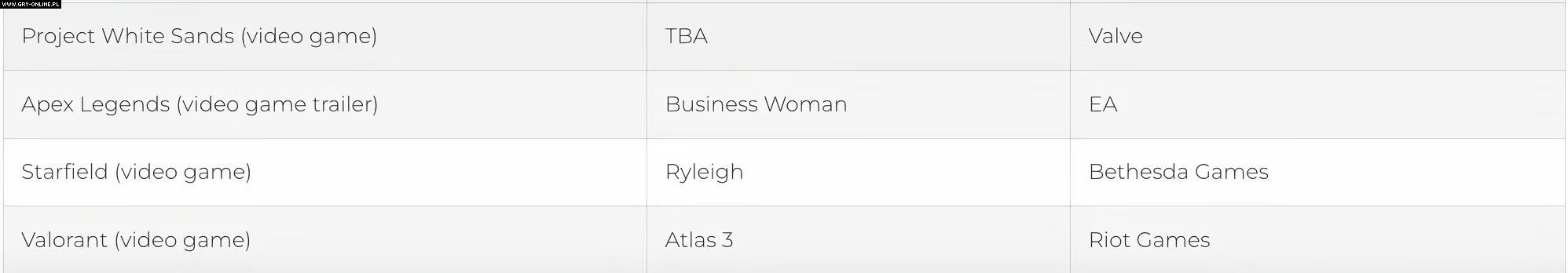 One of the users of the subreddit dedicated to leaks and rumors from the world of video games drew the community's attention to the portfolio of one of the voice actresses. Natasha Chandel, who we are talking about, updated her website, and among games such as Starfield, Valorant, or Apex Legends, a mysterious name, Project White Sands, appeared.