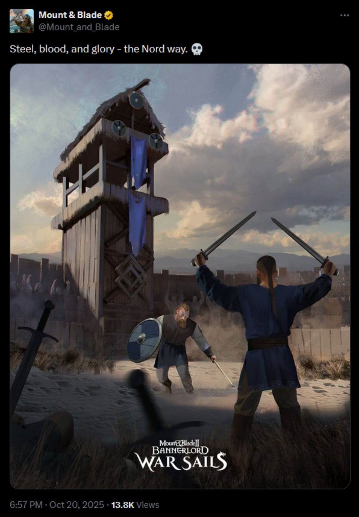 Vikings are often shown with two axes just for dramatic effect. It looks cool, but it’s not exactly historically accurate. Then again, we’re talking about a video game here, and it’d be fun if we actually could dual-wield weapons. We don’t know yet if that’s coming with the DLC, but we’ll find out soon enough. The key art for Mount & Blade on X still says War Sails is set for Fall 2025, so who knows, maybe we’re in for a big reveal.