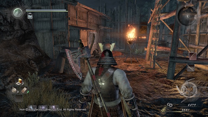 This section of NiOh game guide includes the second part of a thorough walkthrough description of the Isle of Demons main quest, which involves going through the burned Village and fighting a boss called Onyoki.