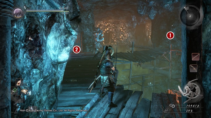 ![In this chamber there are two rocks that generate the poisonous fog - you can find them on both sides of the pillar [1] shown on the above picture - The Silver Mine Writhes | Main missions | NiOh - Main missions - NiOh Game Guide](/nioh/gfx/word/430874437.jpg)