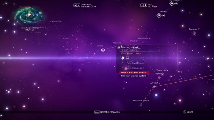 Thanks to the galaxy map, you will be able to move to nearby planetary systems, provided your ship is equipped with the appropriate technology and fuel. The distance you need to travel is under the name of the system and the region.