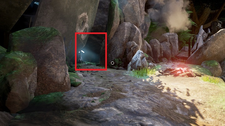 The entrance can be barely visible through the fog, but by navigating using the above screenshot, you should be able to find it without difficulties. While following the path, you reach the next bridge that has to be activated.