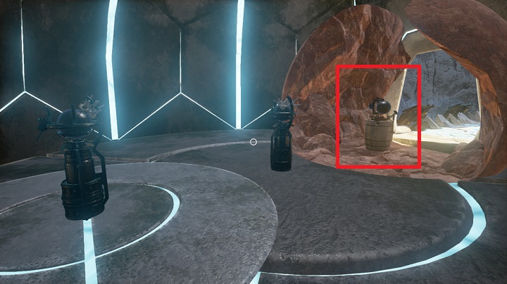 Cross the bridges and the elevator, until finally, you will find yourself in a chamber with three teleportation devices. Use the machine marked on the above screenshot. After a successful teleportation to the cave, return to the bridge, enter the area with the panel for moving the Labyrinth blocks and head right to the door that you unlocked earlier. Thanks to turning the dam, the left bank of the river is accessible. Follow the path up to the shaft, in which you burned the stones few moments earlier. Shortly after the entrance to the shaft, you'll notice a note and a machine, which will allow you to teleport to Mofang. Take time to read the note, and travel to Mofang.