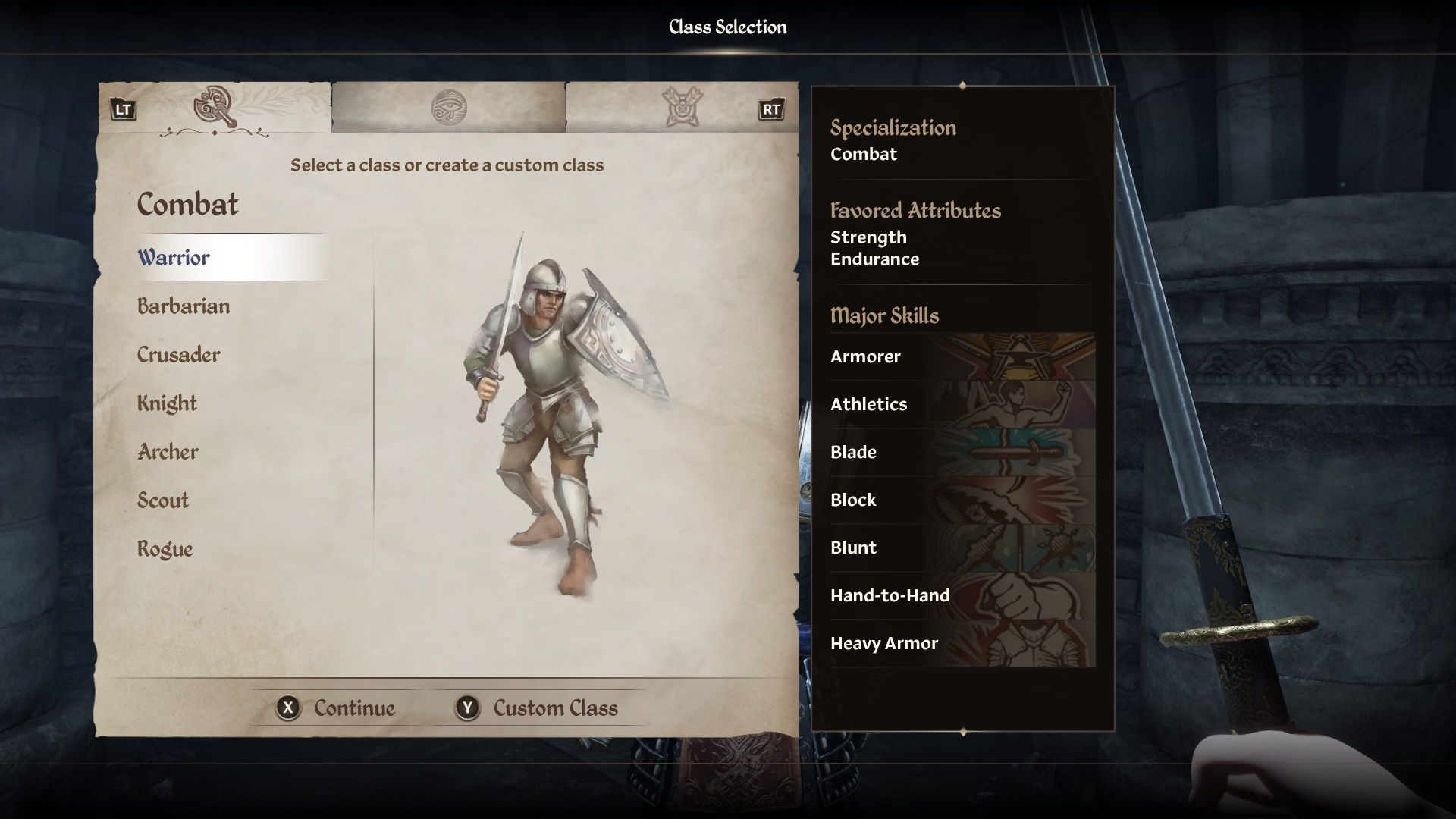 - Alternatively, you can select Custom Class. It will allow you to manually select your major skills and favored attributes.