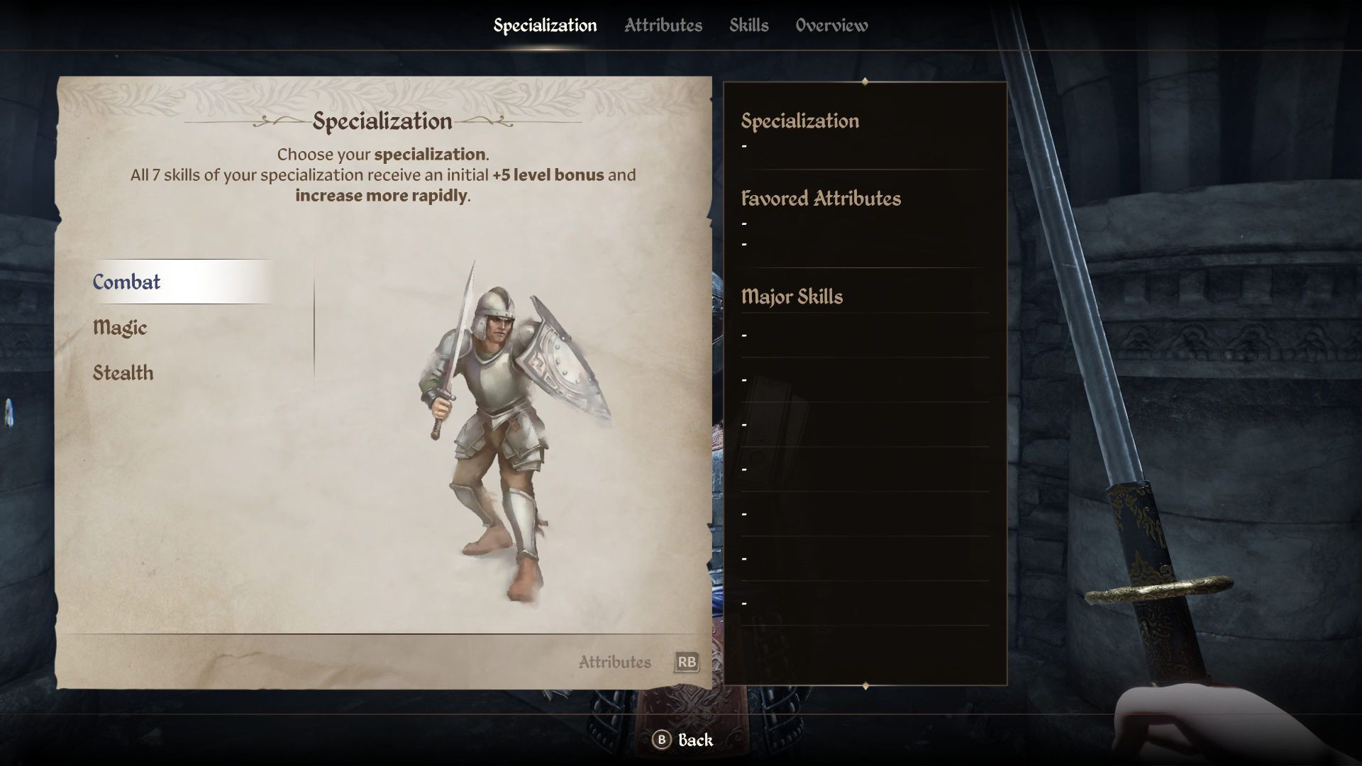 - Each class is described with favored attributes and major skills - the listed skills get leveled up and will be easier to develop later. It is therefore important to choose a class that has skills related to the planned gameplay style.