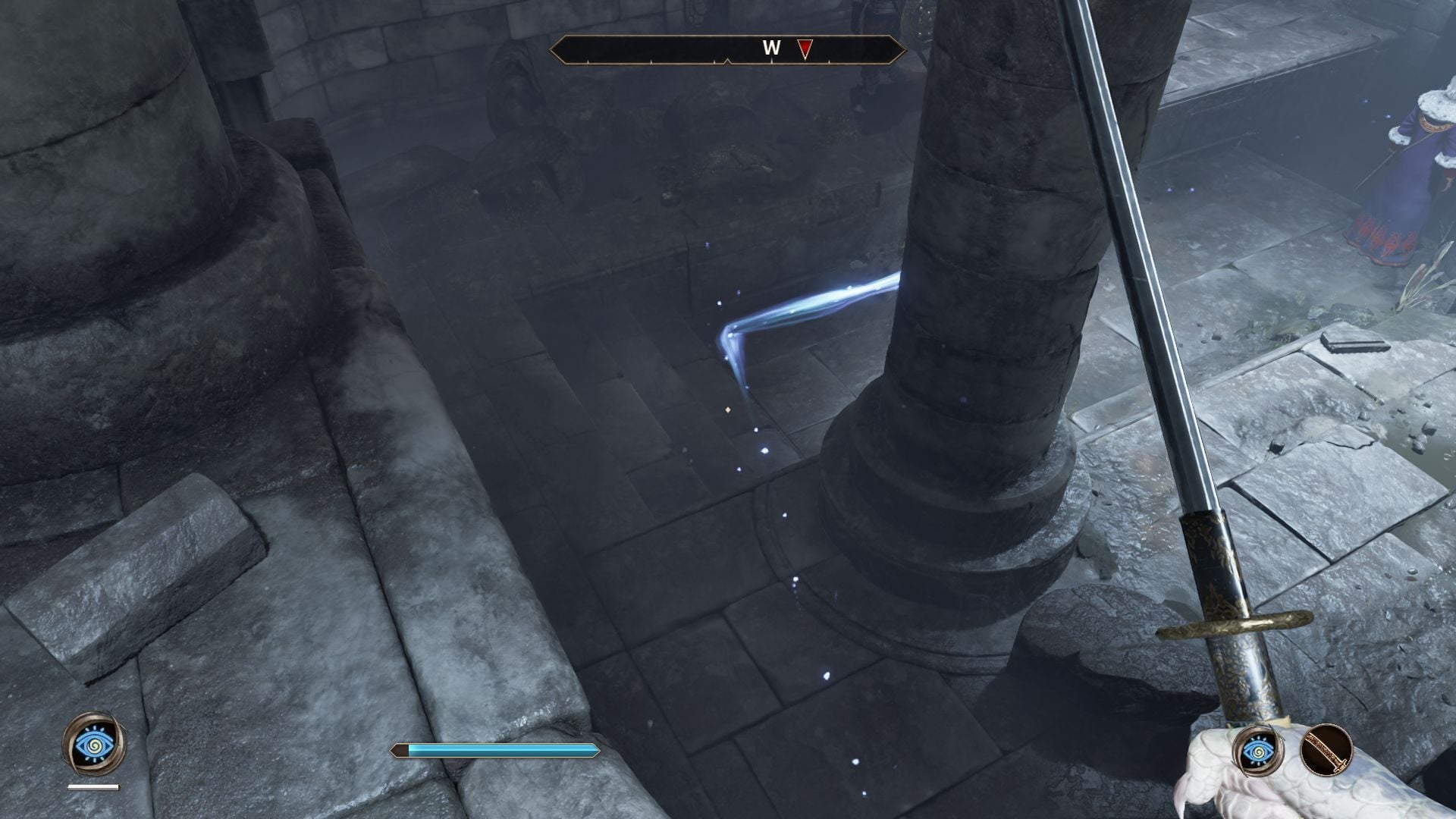 Clairvoyance is a spell that is available from the very beginning of the game. It is mainly used for easier navigation through the game world. When cast, the Clairvoyance spell creates a blue light that will guide you to your current mission objective.