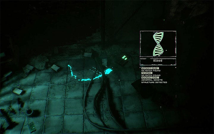 Leave flat 210. Following the murderer is fortunately not a very complicated process, as he was injured and has consequently left numerous bloodstains behind. When you are in the corridor, start looking around for them. The Bio Vision mode can help you with locating them, although using it and scanning each pool of blood is not a mandatory step. It is important that you do not rush this process, in order to avoid losing the tracks and having to return to the vicinity of flat 210 to begin the journey all over again.