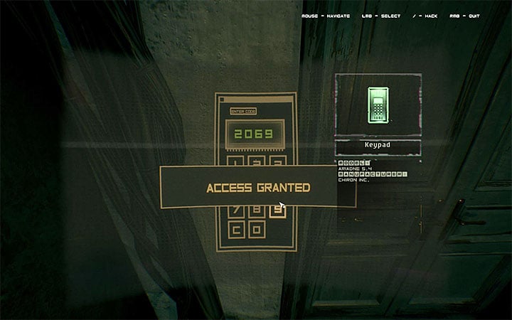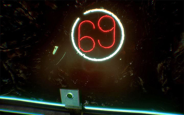 During the journey you will experience hallucinations, but initially they will change nothing and you will still have to find consecutive blood marks. You must ultimately reach the closed door and try hacking the keypad next to it with the intention of discovering the code you need in order to gain access. Unfortunately, you will only learn about the first two digits of the combination (in our case it was 20). After a new scene starts, begin exploring the area and reach the room in the nightclub visible in picture 1, where you can press a small button. As a result of this action, a neon will turn on and the two missing digits of the combination will appear in front of you. Return to the keypad and enter the code 2069 (picture 2).