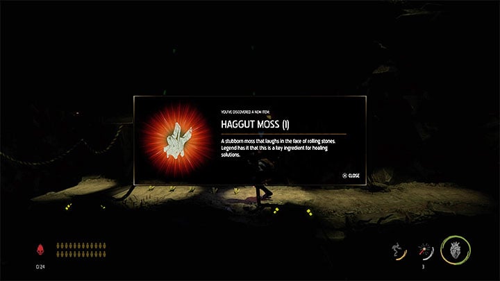 Just after the generator is switched on, the protagonist must step back and jump to the lower shelf. Here you'll come across the third ingredient for the antidote - Haggut Moss.