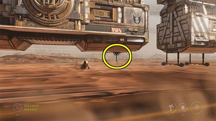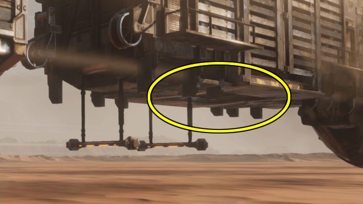 Abe will then have to reach the two newly unlocked wagons. In the case of the first wagon, jump onto the bars shown in the screenshot. They can be found to the left of one of the checkpoints. There's also a Royal Jelly inside the wagon.