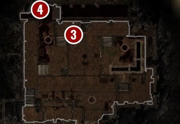 Regardless of what you are going to do about the paladin, you will have to defeat all the enemies that you will encounter in the courtyard [3]. Once the battle is over, search all the containers, fallen bodies and the nearby chambers [4]. If you saved the paladin, you will learn some useful pieces of information that can affect the storyline.