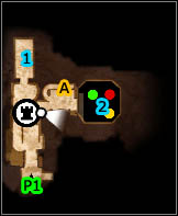 Now it's time to get out of the Queen's Tower. Command your green Minions to mount the nearby spiders. The Greens can walk on walls while riding spiders. Pay attention to the look of the walls surrounding you - the spider webs creates quite visible "path", on which you will find some shiny buttons. It's important to make the Minions step on each button while walking on the walls - thanks to that the lift [2] will go up.