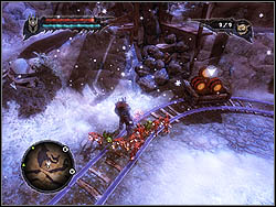 ![]() | The next command upgrade you'll find in Nordberg Town. Go for a walk to the mine where you can get the trolley with explosives which is necessary to blow up the gate of the town. Push the trolley so that it will stop at the first turn, next to the pile of stones. Set your Reds near the explosives then. They should fire the trolley automatically. After the explosion the stones disappear and you will see the command upgrade. |