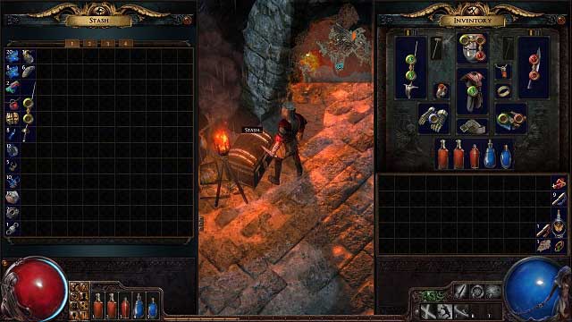 Currency items might be stored in the inventory as stacks. Thanks to it, for example, ten identification scrolls take only one square instead of ten. That way, your inventory may be filled with what you find after battles. Stash is the best place to store your garbage and items you don't use very often. There's one with four tabs in every town.