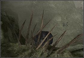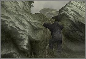 ![]() | Move ahead, taking the way on the vertical wall. Unfortunately, there're spikes in the top, so climbing will be impossible. |
