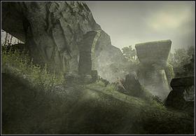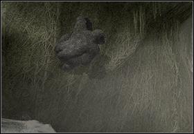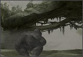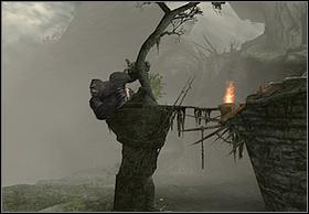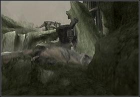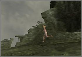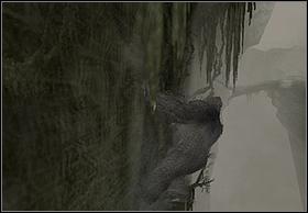 ![]() | Don't waste time, run across the glade and jump down on the shelf, catching the root of course. |