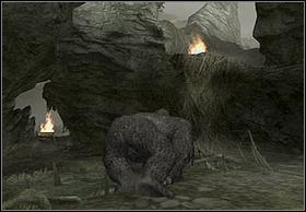 ![]() | When the fire will do it's job (and you'll get rid of some monsters) climb the wall for the top shelf... |
