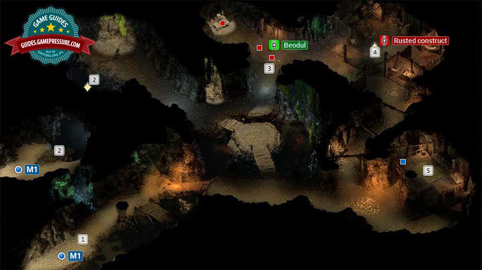 It is best to explore the cave while staying in stealth mode. This will allow you to surprise many of your potential opponents. Be sure to remain extra wary in the part of the cave where Beodul is located (M2,3). It is best to send the member of the team with the highest Perception stat to uncover all of the surrounding traps. It is also worth trying to disarm them all. If the statistics of your team do not allow you to execute this plan, be very careful when trying to deal with the traps.