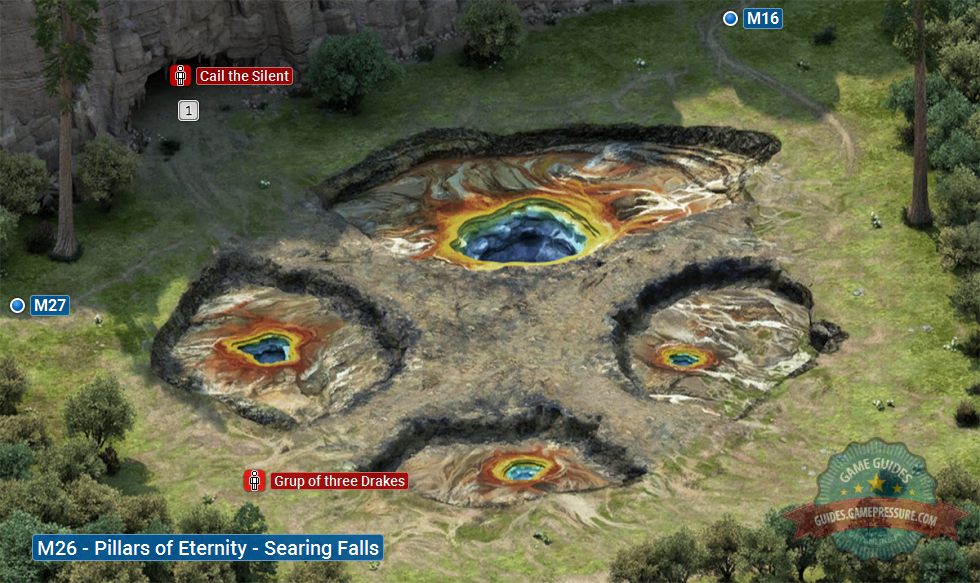 Searing Falls is a small location to the south of the Woodend Plains. The most important location there is a cave in which you can find a huge dragon. It is worth noting that the entire location is full of Drakes, which are also challenging opponents, so try not to wander into this area too early in the game.