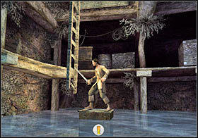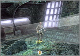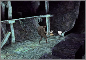 Once you've killed all monsters, take a closer look at your surroundings. There are several crates here and most of them will contain gold pouches. Use the cannon (#1), so you'll be able to proceed to a lower level. Once you're there, turn right and destroy all crates. One of the crates will contain a second pendant (#2). Pick it up.