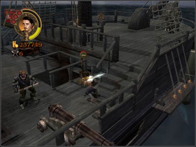 The beginning is easy, provided you keep moving, making sure no crewmember gets pinned by the pirates. After you get on the Pearl hit the switch on the right to lower the powder kegs.