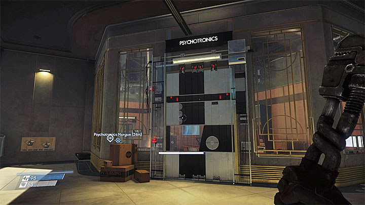 That keycard that you got earlier can be used in the north-western part of level one of Talos I Hall - the doors that should be opened are shown above. There's no need to hurry getting to this place, since in the meantime, some Phantoms and Mimes can appear here. Stairs will lead you to the new location, but be careful: it's possible that a new, strong monster is at their bottom. Kill the Phantom or try to bypass it using the metal elements at the roof. Go through the door to Psychotronics.