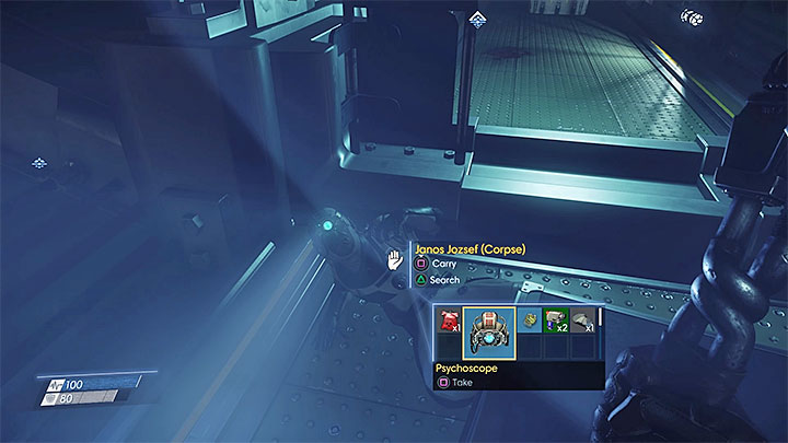 After finding the tunnel, approach the big hole that was sealed with a GLOO gun. A couple of Mimes will come through this hole. You need to defeat them (use the flashlight - it's pretty dark). When you manage to do that, go to check the area from which they came. You have to licate the corpse of Janos Jozsef, shown above. On him, you will find 2 neuromods and the psychoscope we're looking for. From now on, you can use the device to scan enemies, people and machines, which will allow you to analyze their strong and weak points as well as grant you access to alien powers (that will happen in a minute). Additionally, you can now install psychoscope chipsets (initially only two; further slots can be unlocked with developing Psychotronics), which work analogically to the regular Suit chipsets.