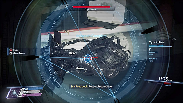 In one of the tunnels you can, for the first time, see Cystoids and their nests. Alien abilities (e.g. the basic version of Kinetic Blast) are good for destroying nests (you can also try to avoid them) but you can also destroy them by using firearms or throw petrol cans at them. As for Cystoids, they react to movement so it is worth to throw objects near them. There is a chance that they start chasing that object and explode prematurely. In both cases you should try to avoid direct contact with Cystoids because, besides losing a few health and suit points, you can also increase the percentage of radiation.