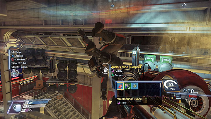 When you secure the upper level you should stand near the opening that leads to the Magnetosphere chamber. WAIT until it ends its cycle - wait the end of the countdown which is proceeded by a release of a shock wave. You must quickly enter the chamber and fly to the Anders Kline's corpse, presented in the picture. Examine them and get Maintenance Tunnel Keycard (you also get, among other things, 2 neuromods). Warning - If you don't leave the chamber in time before the next activation then your character will die immediately!