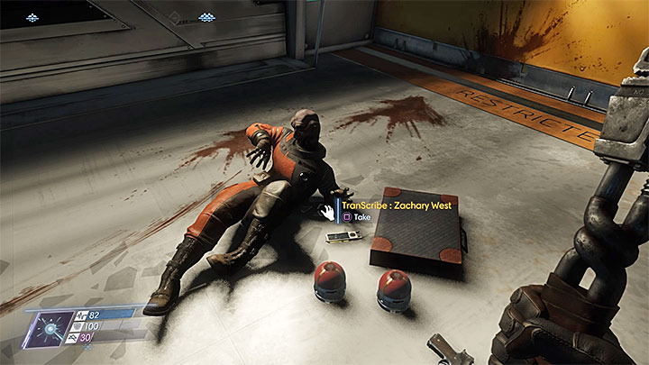 After using the Grav Shaft you can try to open the door that leads to the Deep Storage but they won't budge. Next, you must examine Zachary West's body and get a TranScribe. Listen to the recording and you learn that you must get a voice samples of Danielle Sho. Getting them allows you to remove a blockade on a biometric lock. The process of finding those samples is connected to another main mission - Gathering Echoes.