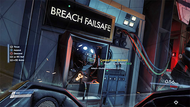 Fly to the damaged part of the station where you find Dr. Calvino's corpse. Ignore it and focus only on finding the damaged panel presented in the picture. Use the Repair ability along with the spare parts in order to make it fully functional again. You learn that you unlocked the access to Beams & Waves Lab.