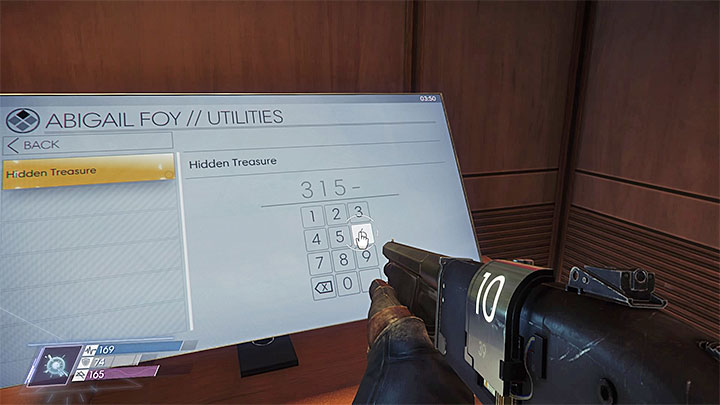 If you've acquired all four numbers (the task should be left without any additional objectives), travel to Crew Quarters B and make your way to a cabin belonging to Abigail Foy (109). Get access to the computer by Hacking or take a look under the desk to find a note containing the password. Switch to Utilities and input the right code (3156) based on four digits which you've found during the treasure hunt.