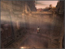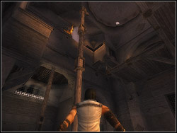 ![]() | After a few steps jump onto railed platform located higher. Jump the rail and hang on railing. Move over on hands to have already known central column behind the back. One pounce and you embrace her already. Notice the kind of window sill sticking out in the wall, jump against it and catch it with hands. |