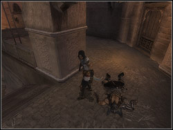 ![]() | You'll face the fight with muscular Guard, armed with the saber. Don't delay about the fight and try hard to kill him as soon as possible, because the Archer is lurking in the depth of the corridor, who continuously shots at you. After taking care of the mentioned two turn to the passage (left from the archer's body) into the next hall. |