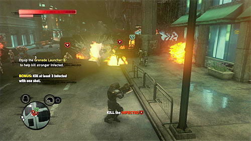 Only after completing the bonus objective, start attacking brawler. Remember that you can't use Heller's powers, so perform many side jumps, trying to keep the monster on distance. When you run out of ammo to the grenade launcher, look around for other such weapon. Finally take care of standard infected.