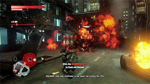 It is best to eliminate scientist by using the TOW launcher to attack them (screen above). You can also make the fight easier, by consuming few soldiers from the squad before the fight begins. Using the TOW launcher is of course not the only option, because you can also use your powers or the Devastator attacks.