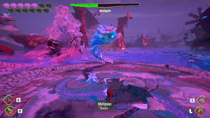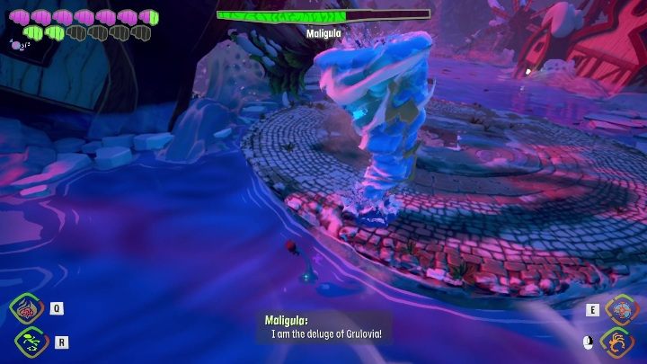 In the second stage, the boss will remove the water barrier. She will summon several opponents around her. You have to get rid of them. You won't proceed to the next stage of the fight until you've depleted Maligula enough life points.